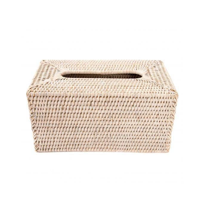 The Sconset Rectangular Tissue Box Cover is a lovely accent for any coastal home. With its classic woven design in a soft, neutral tone, it has a Hamptons-inspired style that exemplifies a chic East Coast aesthetic. This tissue holder for bathrooms and bedrooms is woven from Burmese rattan, a natural and sustainable material that offers excellent durability and structure. The white-washed effect adds to the rugged coastal look and makes it easy to integrate the white rectangular tissue box cover with other elements of a room’s décor.