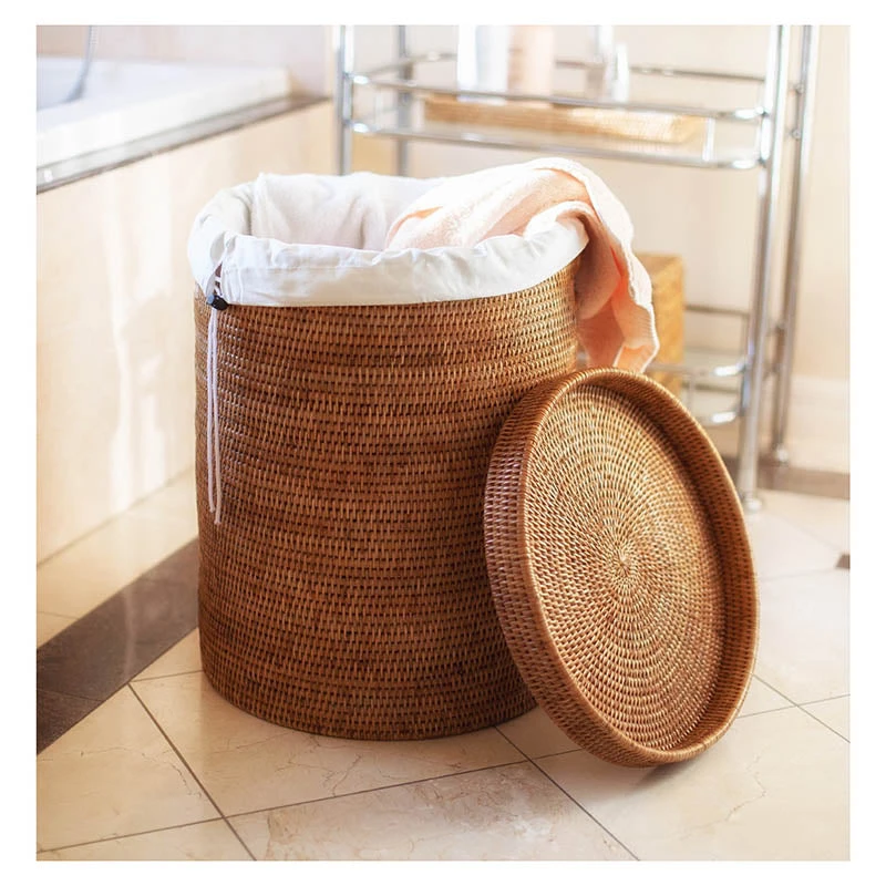 This elegant round hamper with lid features a removable cotton liner, making taking out the laundry a breeze. This hamper allows ventilation preventing bacteria and odor from damaging your clothes. Made from natural rattan, each piece is unique and one-of-a-kind!