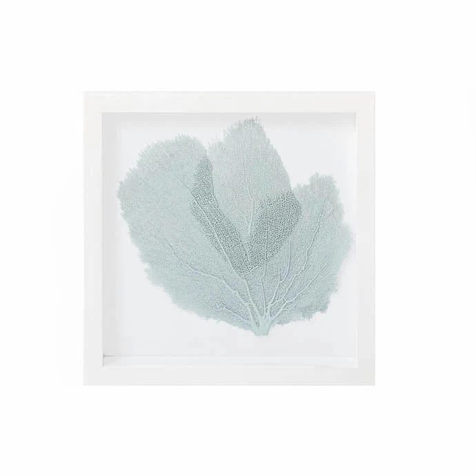 Step into the serene beauty of coastal living with our best-selling Sea Fan Framed Art and elevate your space with the allure of the sea. Each authentic sea fan is hand-painted in a ocean blue hue and mounted on delicate white linen, bringing a tidal wave of charm to your walls.