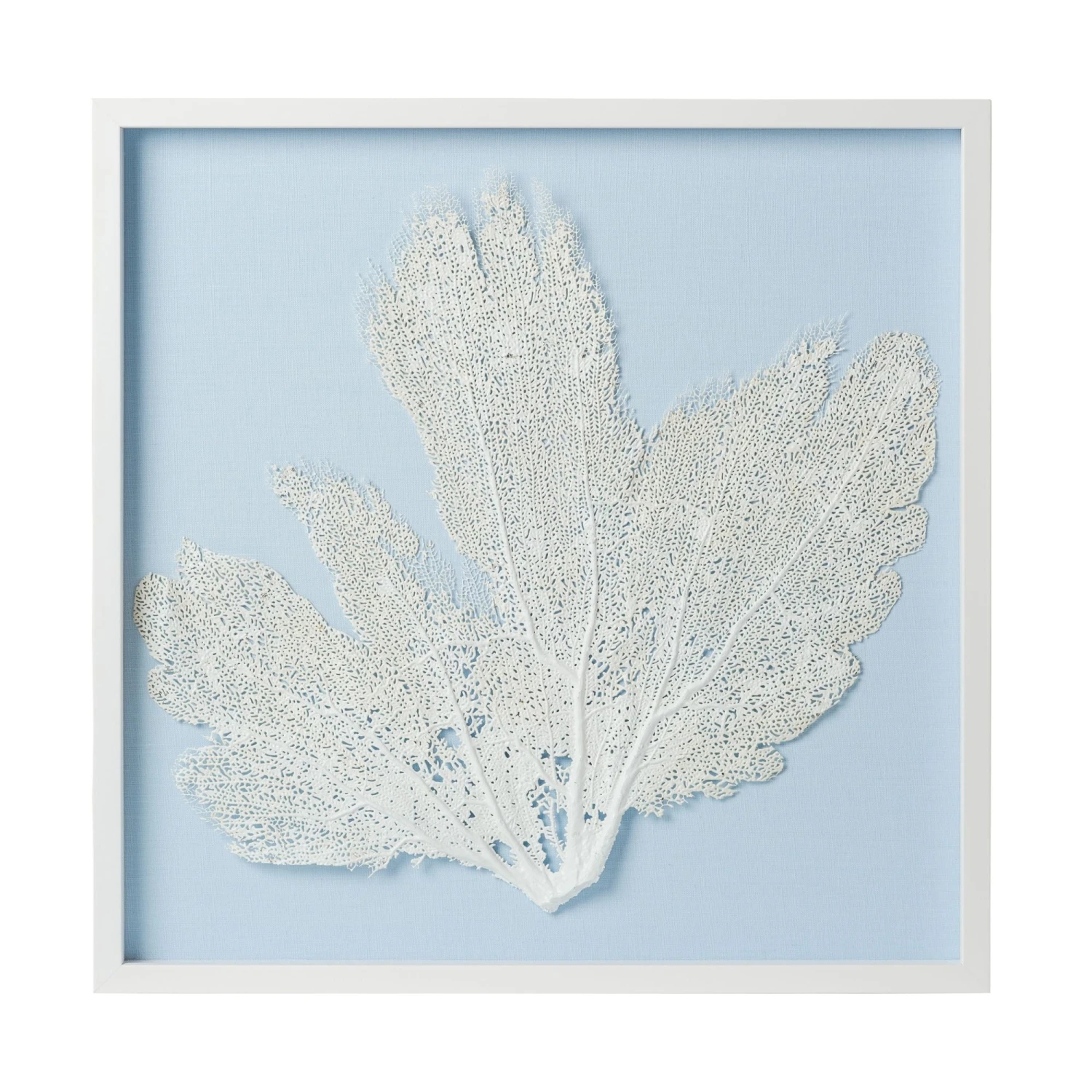 Step into the serene beauty of coastal living with our best-selling Sea Fan Framed Art and elevate your space with the allure of the sea. Each authentic sea fan is hand-painted in white and mounted on delicate light blue linen, bringing a tidal wave of nautical charm to your walls.