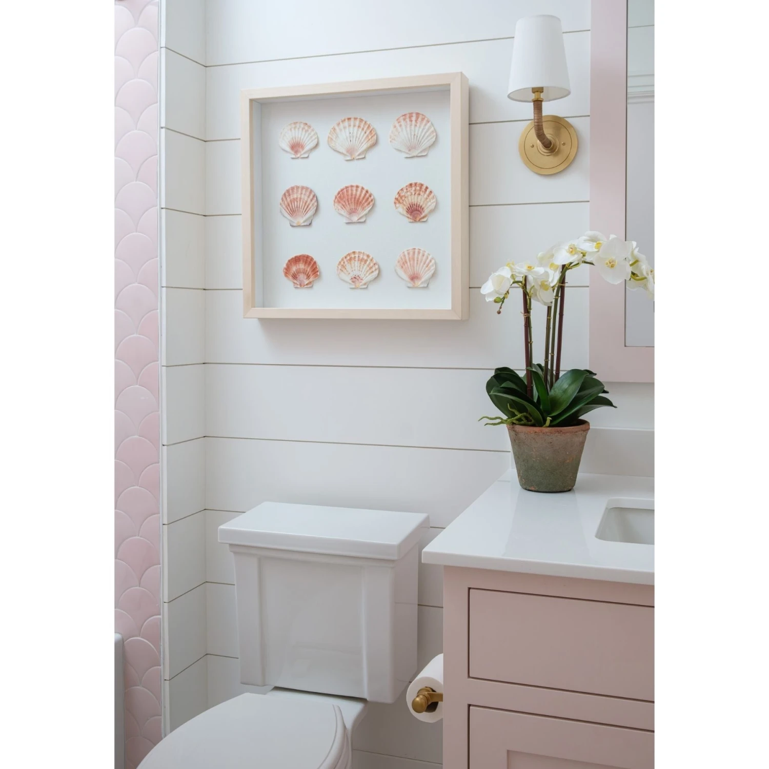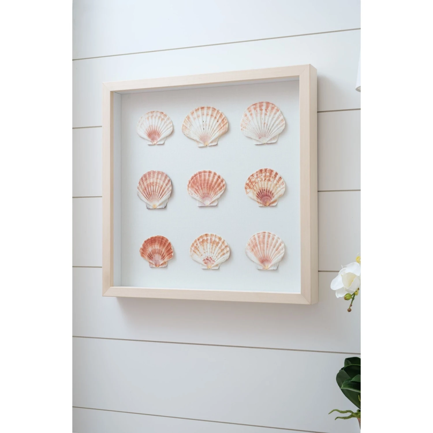 Bring the calming beauty of the shore into your home with our Sea Scallop Framed Art. Carefully arranged on soft white linen, each piece features a captivating grid of authentic pink sea scallop shells, beautifully framed in natural maple wood. Available in two sizes, this artwork effortlessly adds a sophisticated coastal touch to any room. Each seashell is uniquely formed by nature, ensuring your artwork is an original, ocean-inspired treasure.
