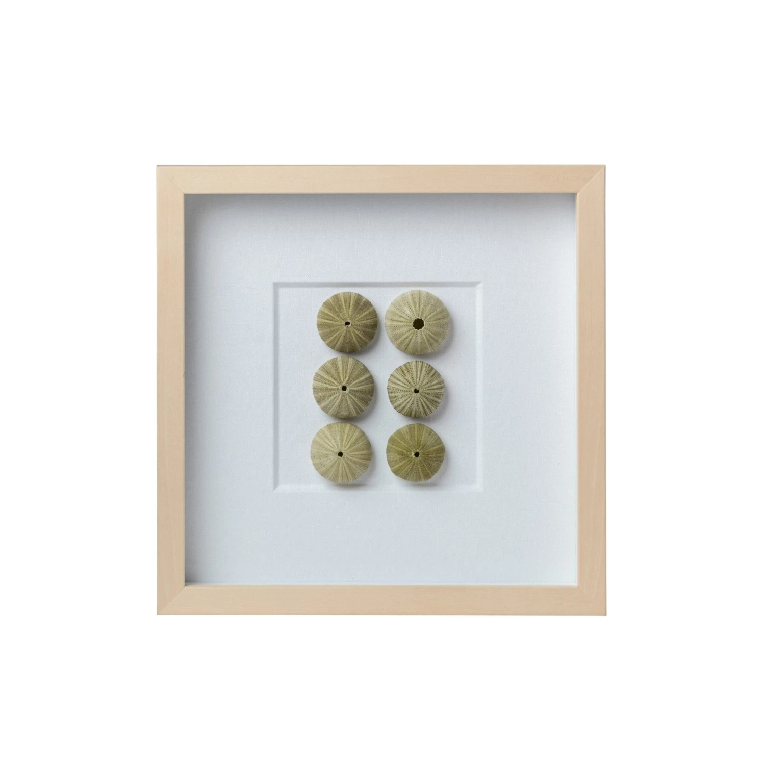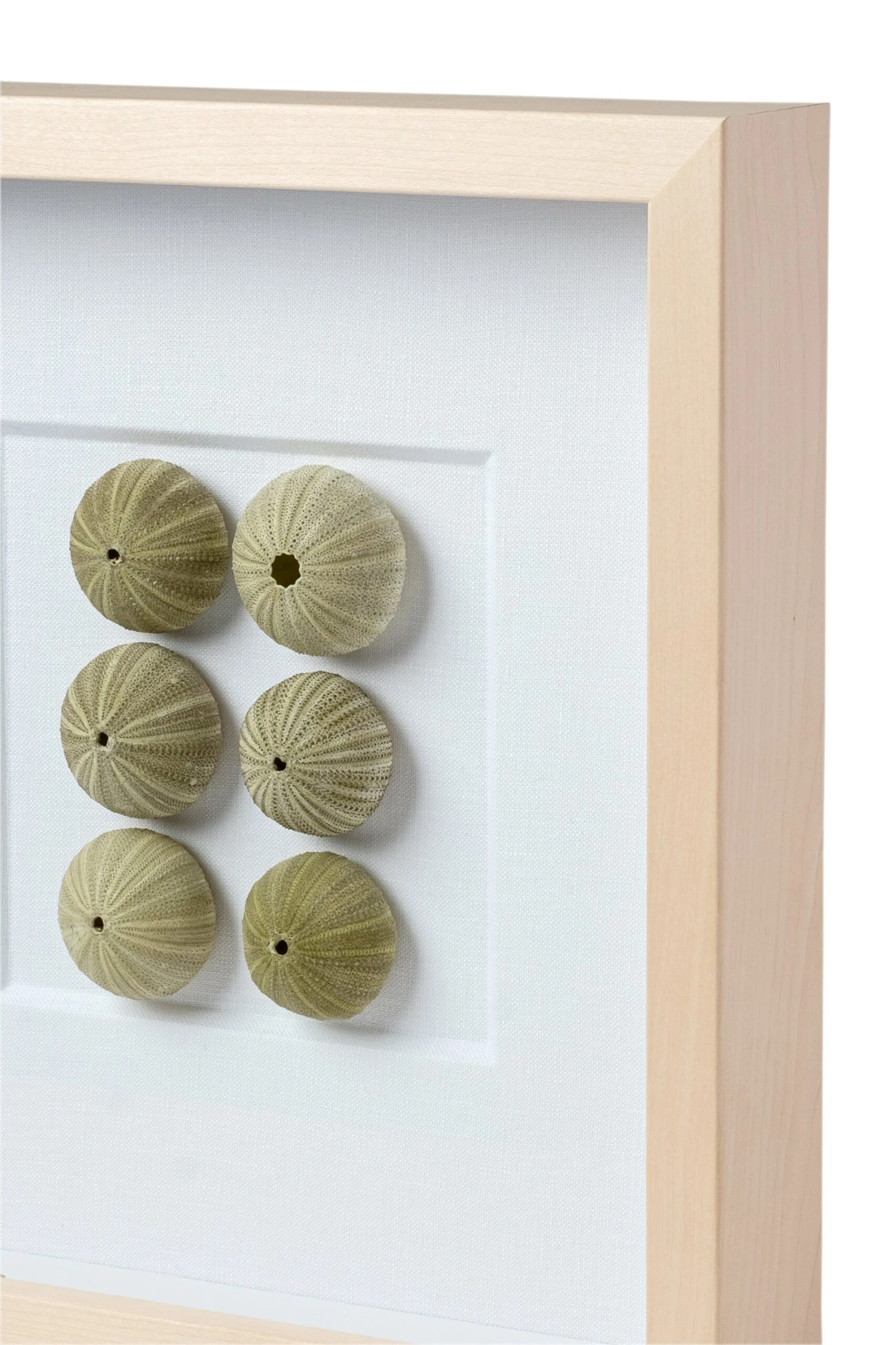 Bring home the beauty and intrigue of ocean treasures with our Sea Urchin Framed Art. Each piece features six genuine sea urchins suspended on delicate white linen and framed in maple wood. Available in three soft coastal hues, this beautiful and unique sea urchin art is perfect for adding a sophisticated coastal touch to any room.