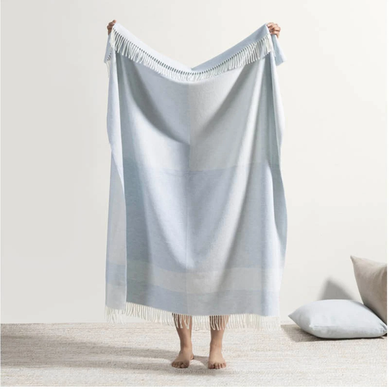 Our beautiful Seabury Plaid Throw gives a stylish update on a classic plaid. It is loomed in Italy for incredible quality and is a perfect layering piece for any time of year. This timeless, one-of-a-kind throw in a beautiful soft blue hue is finished with a cream fringe.