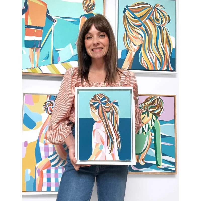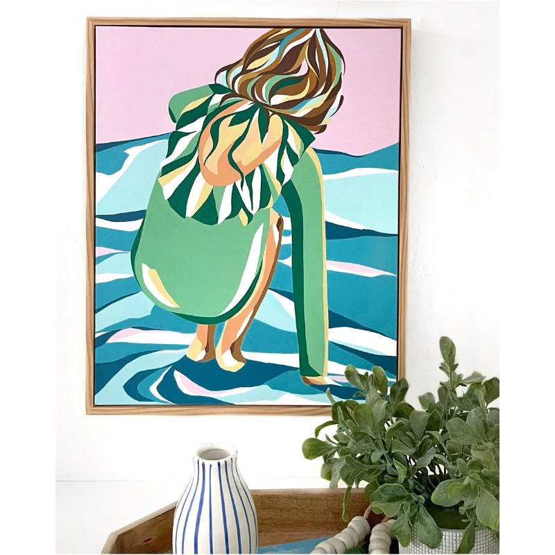 Featuring clean lines and playful color combinations, San Diego based artist Jaime McCarrier’s style blends perfectly with a seaside aesthetic. Her artwork combines beach scenes and fresh colors to create coastal art with a modern twist. Inspired by the beach, fashion, and beauty in the most seemingly ordinary moments, this series adds a fun pop of color to your walls.