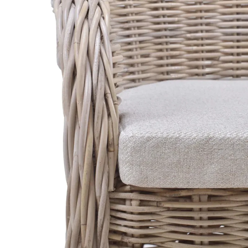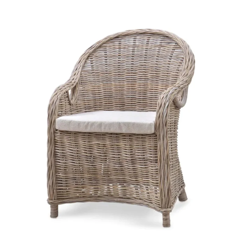Crafted from natural rattan, the Seaview Chair brings a relaxed, coastal charm to your home. Its curved silhouette and woven texture create a laid-back yet polished look, while the cushioned seat ensures comfort for lounging or dining.