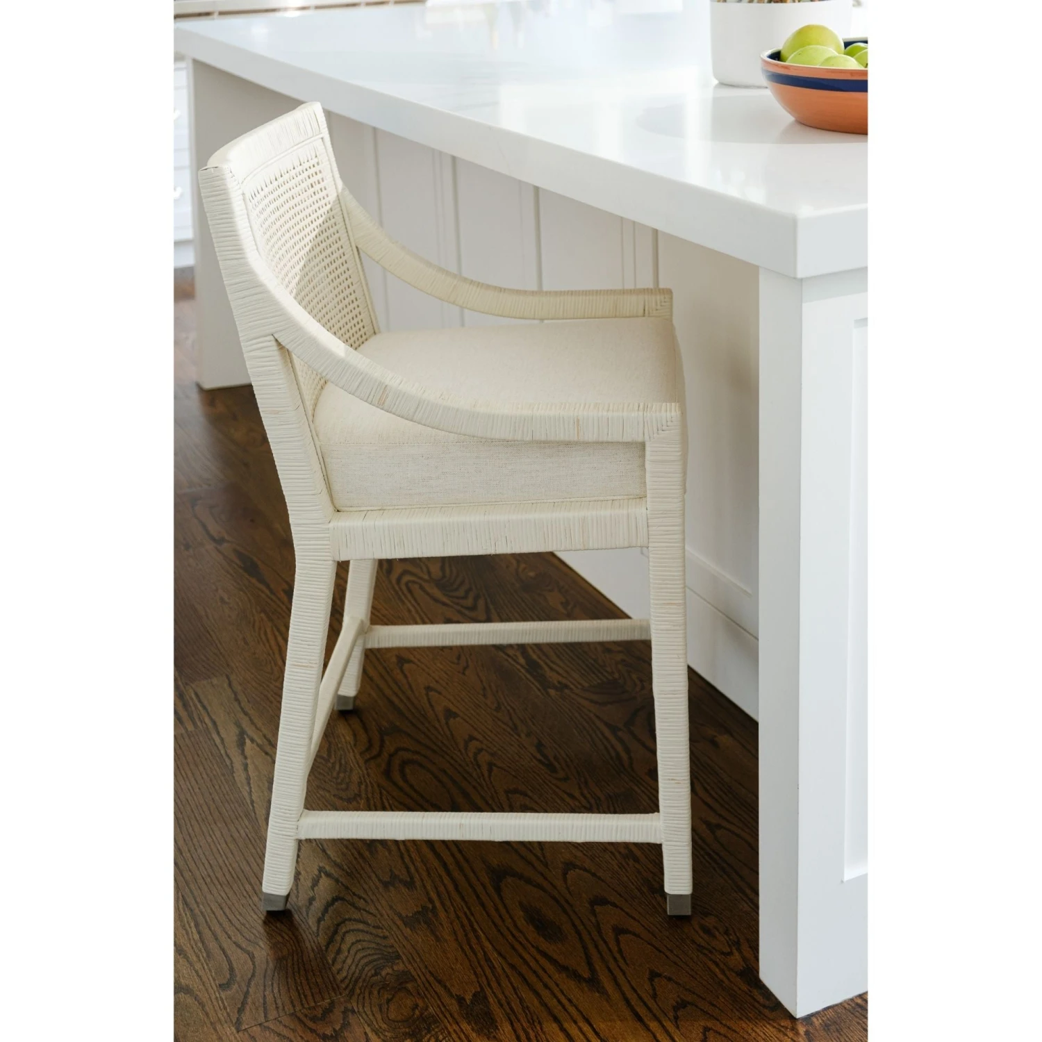 Bring a touch of laid-back elegance to your dining area with the Sound View Counter Chair. This chair charmingly combines woven rattan with soft fabric, creating a cozy yet chic look. Its design is both relaxed and stylish, perfect for adding a dash of sophistication to casual dining or kitchen spaces. Made from natural materials, each stool has its own unique color variations, textures, and charming beauty marks, enhancing its individual character and natural appeal.