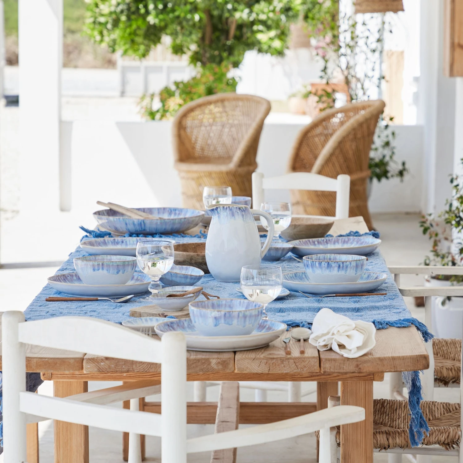 Elevate your dining experience with the Tideline Dinner Plate, meticulously handcrafted of stoneware in Portugal. Its serene blue watercolor glazed border adds a touch of coastal elegance to any table setting and every meal, bringing the tranquil essence of the ocean to your gatherings.