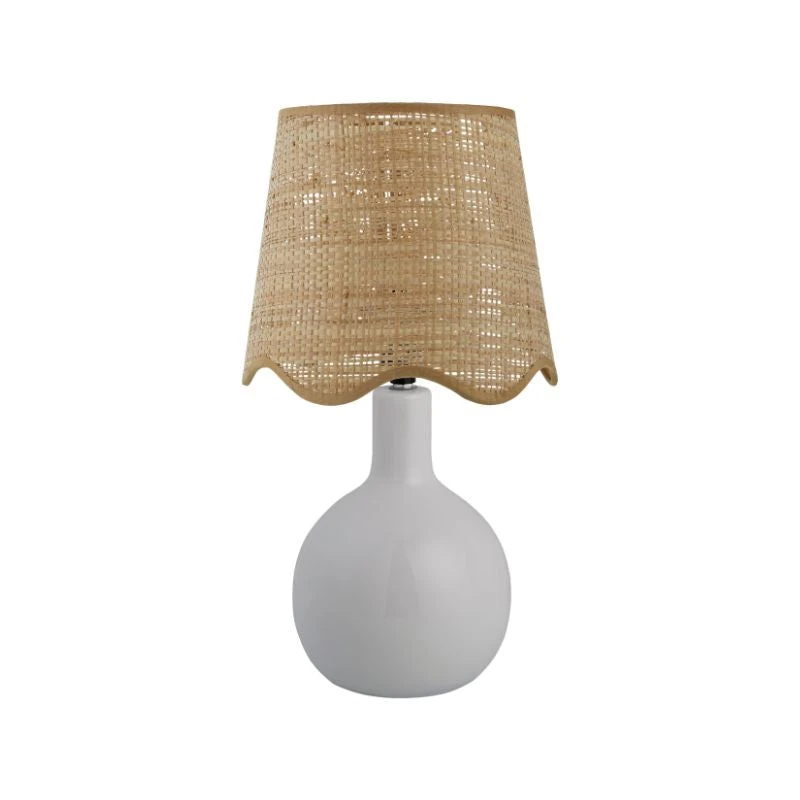 Illuminate any space with our Tiny Tides Mini Table Lamp. Crafted with a stunning ceramic base and sweet scalloped shade, this darling piece trancends style and will compliment any surface or room. Choose from a natural rattan or white linen scallop shade to make this lamp perfect for your home.