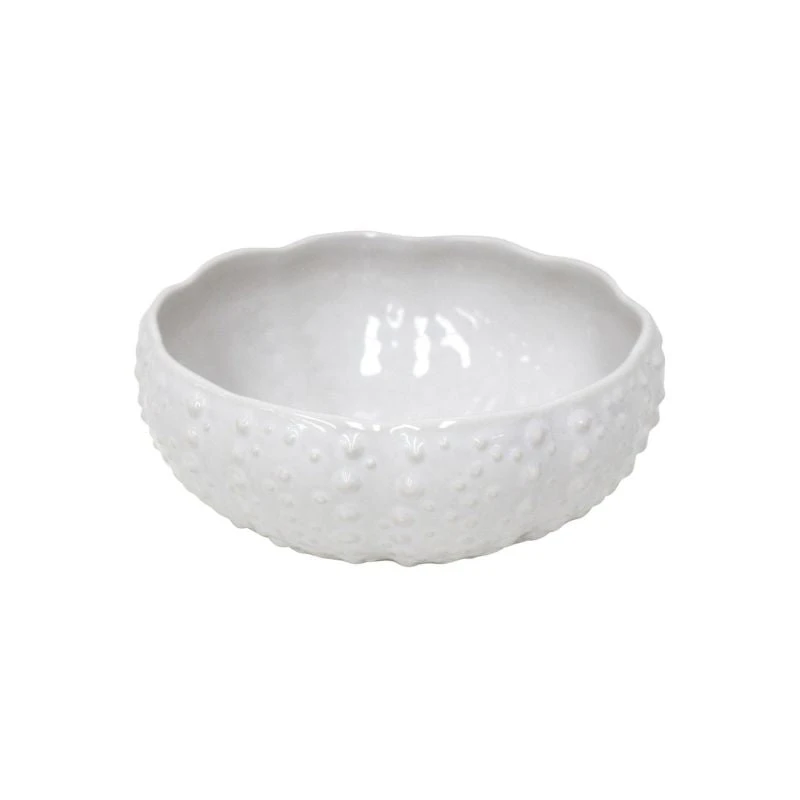 Crafted from high-quality stoneware in Portugal, each bowl is lovingly handmade to resemble the intricate beauty of a natural sea urchin, its textured design and scallop rim exude a sense of oceanic charm that captivates the eye. Each unique piece is a masterpiece, adding a touch of artistry to your table setting. Whether you’re serving up side dishes or appetizers, this bowl is a statement piece that effortlessly blends practicality with coastal flair.Â
