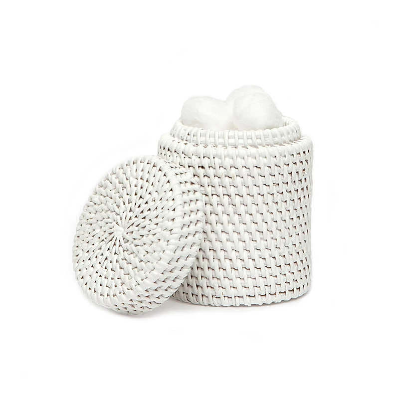 Organic dyes and detailed craftsmanship elevate our handmade Watch Hill rattan collection. Our Watch Hill Canister in White is perfect for storing all of your bath essentials (like cotton balls and q-tips) in style.