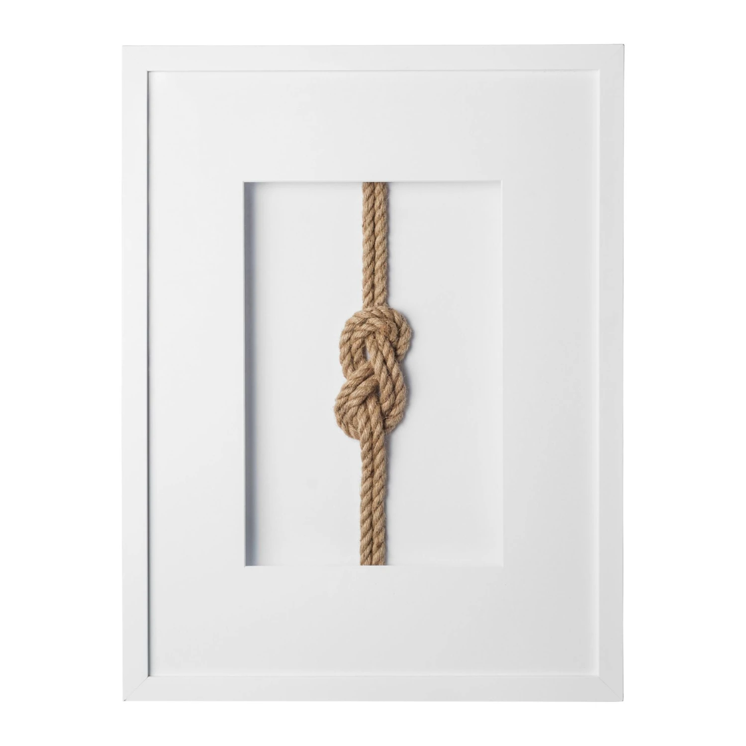 Display this knotting art on its own or as part of a series with our other nautical knot decor. Available in white and navy color schemes, other knot décor options in our collection include the double academic knot, the double Carrick bend and the double square knot. Collect these framed art pieces to display in an entryway, hallway, living room, kitchen or bath.